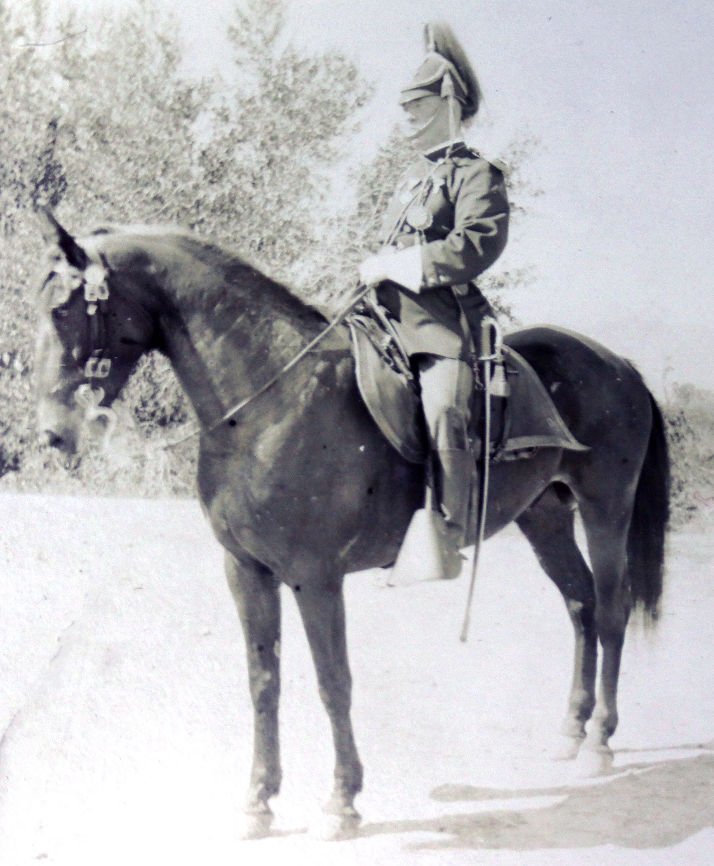 Captain John S. Loud, 9th Cavalry, U.S. Army, on his favorite horse, Punch. 1895-7. Ft. Washakie, Wyoming. Photo from Loud family scrapbook.